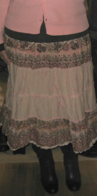 Thrifted Items: Skirt ($5.99), white cardi, black sweater, sandals, necklaces, bracelets. I'll also be wearing a little black shawl in the evening (not photographed) that was also thrifted.